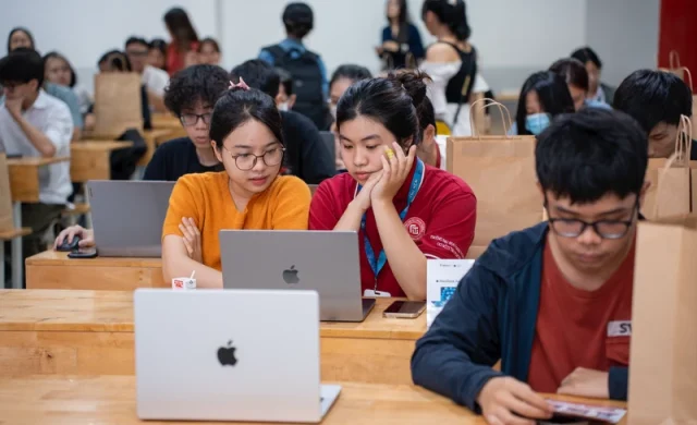 D.Educare của hệ thống bán lẻ hàng công nghệ Di Động Việt phối hợp cùng các đối tác Synnex FPT, Samsung, Bear và VFXanh trong hai tuần qua đã tiếp tục tổ chức những hoạt động workshop trưng bày và trải nghiệm công nghệ cho các sinh viên – học sinh tại khu vực TP.HCM. Workshop công nghệ đã diễn ra tại Trường Vinschool Central Park và Trường Đại học Quốc tế Hồng Bàng (HIU) (ngày thứ Sau 30-5-2025) và tại Trường Đại học Ngoại Thương Cơ sở II (thứ Sáu 6-6-2025). vừa qua, tại đông đảo sinh viên đã tham dự workshop “Học tập & Làm việc, MacBook cân tất” do D.Educare của Di Động Việt phối hợp cùng nhà phân phối FPT Synnex tổ chức.