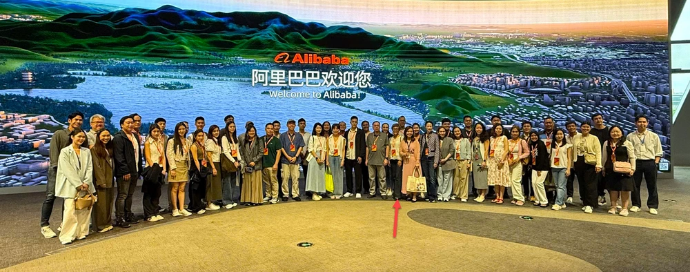 Chị Vương Linh (áo trắng ở giữa, thứ 12 từ phải qua) tham gia chương trình đào tạo của Alibaba. (Ảnh do Lazada cung cấp).