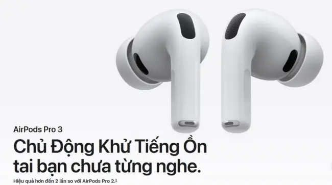 AirPods Pro 3 sở hữu công nghệ Chống ồn Chủ động trong tai (in-ear ANC) tốt nhất thế giới (được thử nghiệm vào tháng 7-2025 tuân thủ tiêu chuẩn IEC 60268-24 khi so sánh với các in-ear headphone không dây đang bán chạy nhất trên thị trường). Khả năng chống ồn cao gấp đôi AirPods Pro 2. Chất lượng âm thanh vượt trội. Cảm biến nhịp tim hoàn toàn mới trong quá trình tập luyện. Dịch trực tiếp để giao tiếp đa ngôn ngữ. Và thời lượng pin được cải thiện với thời gian nghe lên đến 8 giờ.