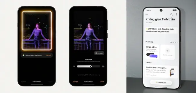 Song song với tối ưu hiệu năng, ColorOS 16 (dựa trên Android 16) mang đến bộ công cụ AI mạnh mẽ hỗ trợ sáng tạo nội dung. Tính năngCân chỉnh Sáng Chân dung AImới giúp cải thiện chất lượng ảnh chân dung trong điều kiện thiếu sáng, tự động cân bằng ánh sáng và tông màu da chỉ bằng một chạm. Ngoài ra, Find X9 Series còn tích hợpKhông gian Tinh thần (AI Mind Space) kết hợp cùng phím cứng Snap Key tiện lợi, cho phép người dùng lưu nhanh thông tin quan trọng chỉ với một lần nhấn. Hệ thống sẽ tự động nhận diện và ghi lại nội dung trên màn hình như hình ảnh, văn bản dài hoặc âm thanh, sau đó sắp xếp và phân loại thành các bộ sưu tập thông minh giúp dễ dàng tìm lại khi cần.