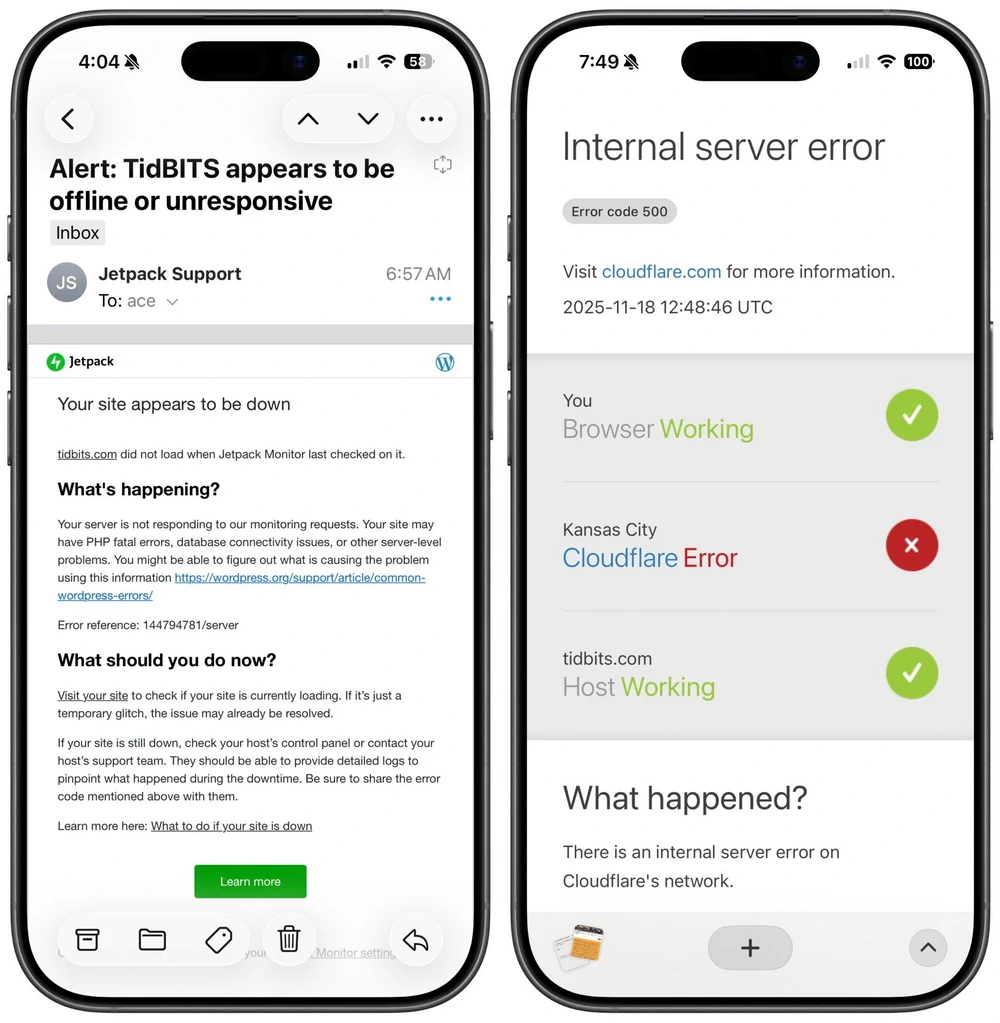 Sự cố Cloudflare bị sập mạng này xảy ra chưa đầy một tháng sau khi dịch vụ đám mây Amazon Web Services ngày 20-10-2025 bị gián đoạn cả ngày, khiến nhiều dịch vụ trực tuyến bị ngừng hoạt động; tiếp theo là sự cố ngừng hoạt động toàn cầu của dịch vụ đám mây Azure và 365 của Microsoft hôm 29-10-2025. Trước đó, vào tháng 7-2024, một bản nâng cấp phần mềm bị lỗi của công ty an ninh mạng CrowdStrike đã gây ra sự cố ngừng hoạt động trên diện rộng, khiến các chuyến bay tạm thời bị dừng, ảnh hưởng đến các dịch vụ tài chính và buộc các bệnh viện phải trì hoãn các thủ tục.