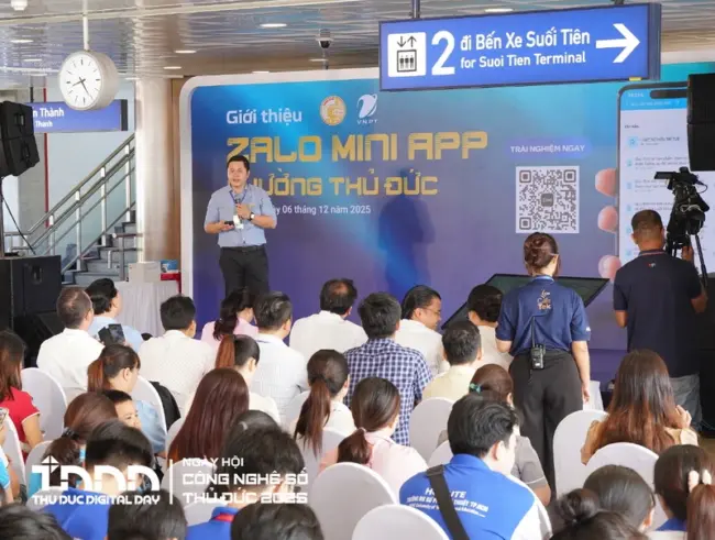 Ngày hội Công nghệ số Thủ Đức – Thu Duc Digital Day 2025 đã diễn ra trrong hai ngày cuối tuần 6 và 7-12-2025. Đặc biệt, đây là lần đầu tiên diễn ra một sự kiện công nghệ được tổ chức ngay tại Ga Metro Thủ Đức. Mọi người có cơ hội trải nghiệm công nghệ kép: vừa trải nghiệm đi Metro trên Tuyến số 1 Bến Thành – Suối Tiên, vừa trải nghiệm các dịch vụ, tiện ích và sản phẩm trong nghệ tại sự kiện.