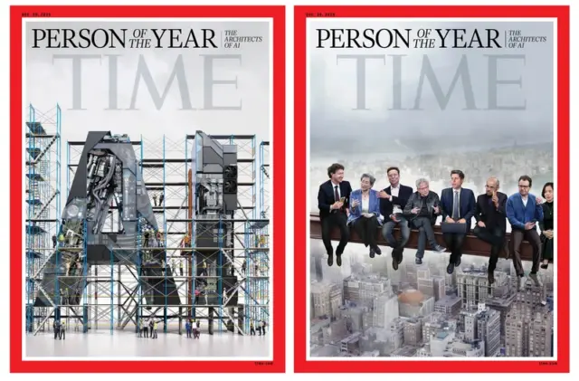 Trở lại lần công bố mới nhất, “Nhân vật của năm 2025” là một nhóm 8 người là những nhân vật có những đóng góp nổi bật cho công nghệ AI. Trên một trong hai mẫu bìa cho số TIME đề ngày 29-12-2025, Tạp chí vẽ hình 8 nhân vật AI này ngôi vắt vẻo trên một thanh dầm sắt khung nhà cao tầng với nền thành phố bên dưới.