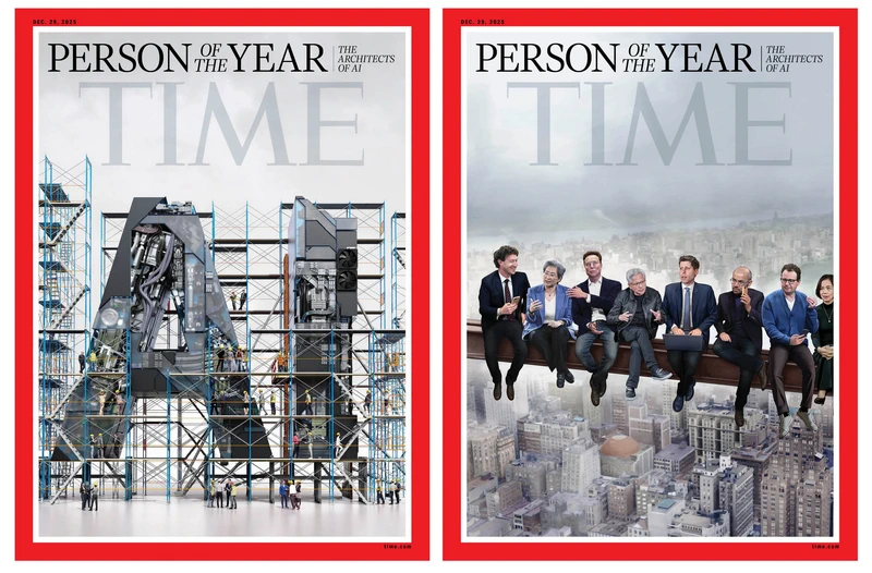 Trở lại lần công bố mới nhất, “Nhân vật của năm 2025” là một nhóm 8 người là những nhân vật có những đóng góp nổi bật cho công nghệ AI. Trên một trong hai mẫu bìa cho số TIME đề ngày 29-12-2025, Tạp chí vẽ hình 8 nhân vật AI này ngôi vắt vẻo trên một thanh dầm sắt khung nhà cao tầng với nền thành phố bên dưới.