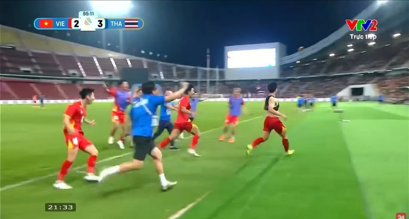 Đội tuyển bóng đá U22 Thái Lan đã có được một thời gian “dẫn trước” đội tuyển bóng đá U22 Việt Nam “3-2” trong trân chung kết bóng đá nam tại SEA Games 33 ở Thái Lan tối 18-12-2025. Chỉ có điều, chuyện đó đã diễn ra trong vòng 13 giây trên… bảng kết quả trận đấu trên màn hình truyền hình trực tiếp.