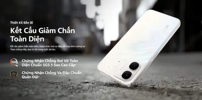 vivo Y31d đạt chứng nhận chống rơi vỡ 5 sao từ SGS và độ bền chuẩn quân đội Hoa Kỳ, cho thấy khả năng chống chịu trước các va chạm ngoài ý muốn như rơi khỏi bàn, va đập trong balo hay trượt tay khi di chuyển. Những tiêu chuẩn này giúp người dùng an tâm hơn khi sử dụng thiết bị trong thời gian dài, đặc biệt với nhóm người dùng thường xuyên di chuyển hoặc làm việc ngoài trời.