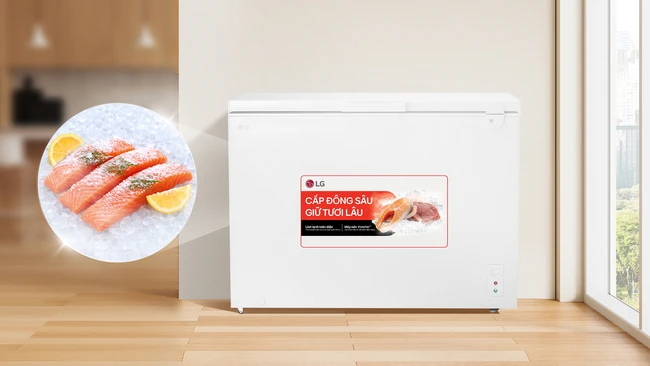 Ngoài các dòng tủ lạnh, LG còn giới thiệu mẫu tủ đông ngang Inverter dung tích 291L, đáp ứng nhu cầu trữ đông thực phẩm gia tăng của các gia đình và cửa hàng trong giai đoạn cao điểm cận Tết.