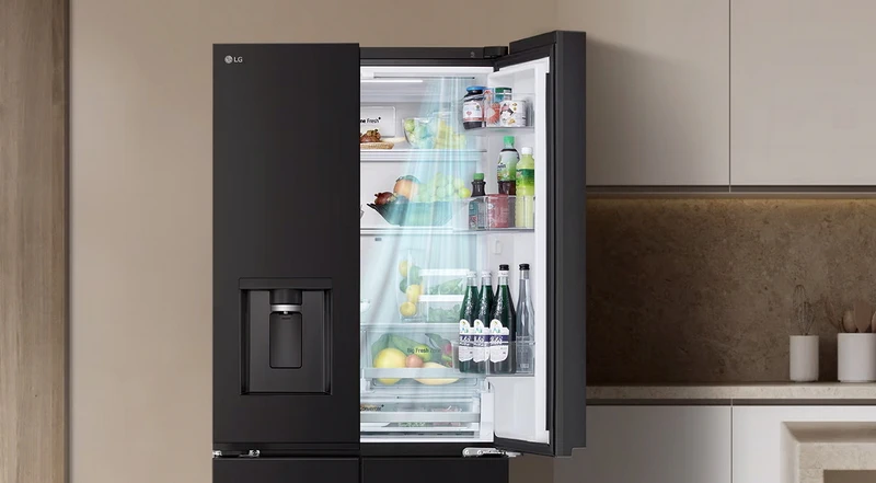 Tủ lạnh LG French Door dung tích 571L với thiết kế mặt gương là một trong những sản phẩm chủ lực trong đợt ra mắt lần này. Sở hữu mặt gương đen sang trọng, sản phẩm trở thành điểm nhấn tinh tế cho không gian bếp hiện đại. Đồng thời, bề mặt tủ được hoàn thiện với khả năng hạn chế bám vân tay, giúp duy trì vẻ ngoài luôn sạch đẹp và đơn giản hóa việc vệ sinh trong quá trình sử dụng hằng ngày.