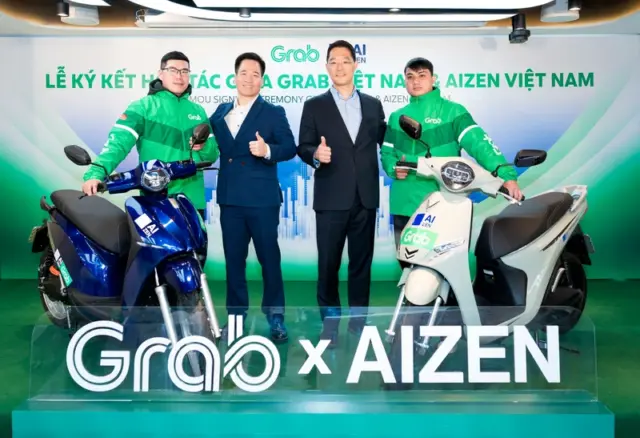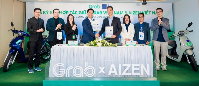 Grab Việt Nam ngày 26-1-2026 cho biết siêu ứng dụng đa dịch vụ này vừa ký kết thỏa thuận hợp tác với AIZEN Việt Nam, công ty công nghệ AI và dữ liệu trực thuộc AIZEN Global, nhằm cung cấp thêm giải pháp để hỗ trợ đối tác tài xế Grab chuyển đổi sang sử dụng xe máy điện. Thông qua hợp tác, hai bên sẽ mang đến giải pháp thuê xe máy điện thuận tiện và linh hoạt dành cho đối tác tài xế xe hai bánh của Grab, với ưu đãi về giá thuê và chính sách chăm sóc, hỗ trợ vượt trội giúp các bác tài an tâm vận hành.