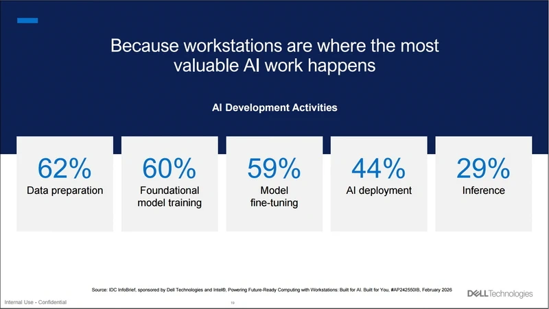 Trong khi AI PC giúp phân tán trí tuệ nhân tạo trên toàn bộ lực lượng lao động, máy trạm (workstation) vẫn tiếp tục đóng vai trò là xương sống hiệu năng cho các ứng dụng đòi hỏi nhiều tài nguyên tính toán hơn. Điều này đặc biệt đúng trong bối cảnh doanh nghiệp đang ngày càng dịch chuyển quy trình phát triển AI về hệ thống tại chỗ (on-premise). Các nhà phát triển, kỹ sư, nhà thiết kế, và đội ngũ dữ liệu đều dựa vào những hệ thống máy trạm cho việc phát triển mô hình AI, mô phỏng, kết xuất đồ họa (rendering), chuẩn bị dữ liệu, và hoạt động chuyên sâu về điện toán khác. Đây vốn là những tác vụ luôn đòi hỏi độ tin cậy tuyệt đối, độ trễ thấp, và hiệu suất ổn định.